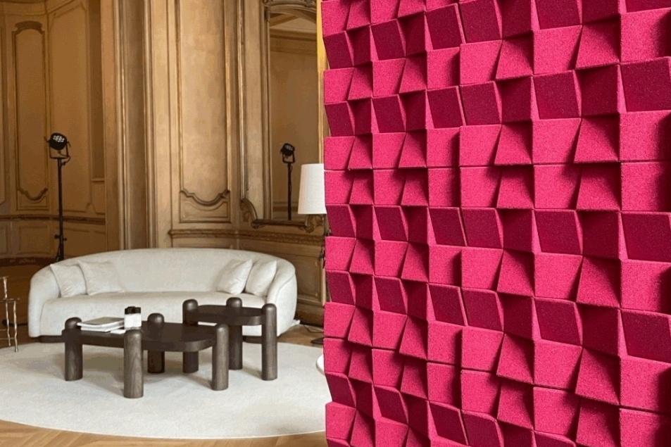 Made from sustainable, recycled cork, Organic Design Blocks offer natural sound absorption while enhancing contemporary interiors with dynamic, sculptural elegance.