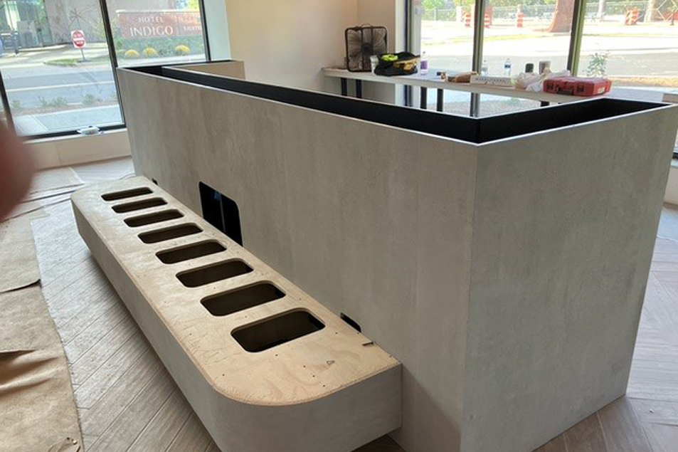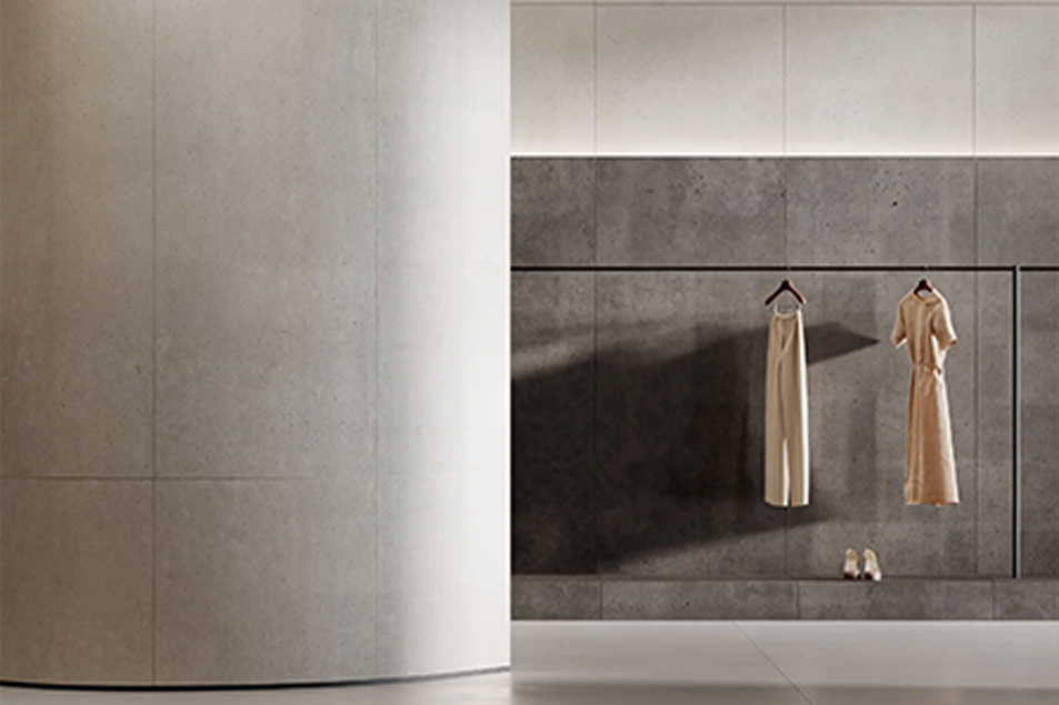 Concrete LITE⢠Flex is a sustainable alternative to heavy concrete surfaces, engineered for versatility and ease of use. At just 1/8ā thick, these flexible panels can be mounted flat or curved on surfaces with a minimum 6ā radius, making them ideal for creative wall and ceiling applications.