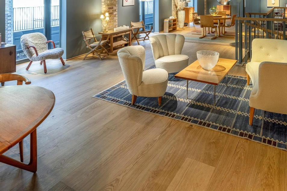 Hightech Woods can be ‘floated’ or glued down, and are available in 10 different options, from a range of Oak hue variations to Natural Walnut and Ash.